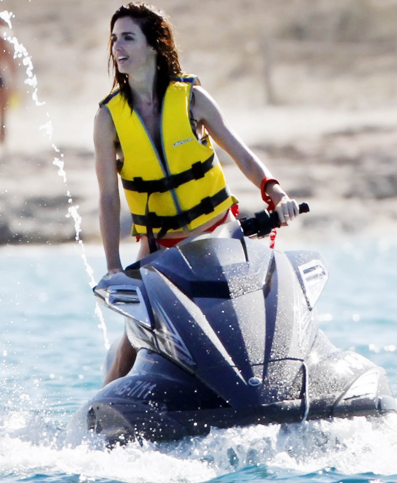 Paz Vega enjoys jet ski session in a red bikini while vacation in Ibiza